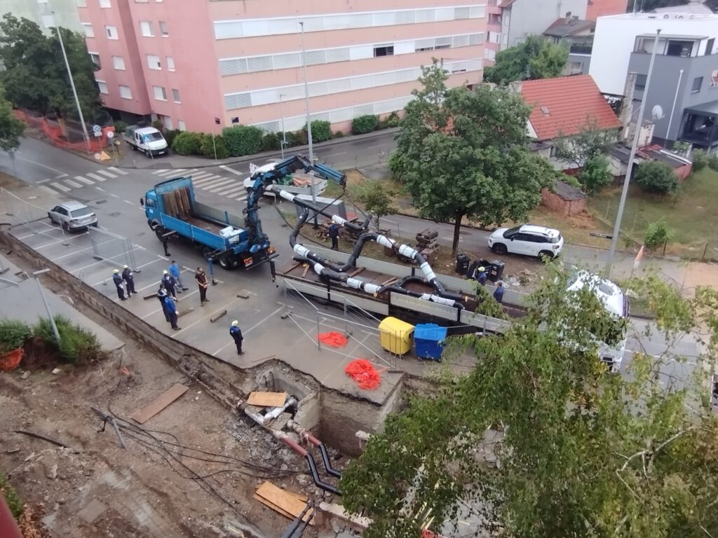 Jutros u našoj Wuerthovoj na Jarunu ulica puna teške mehanizacije, kao iz Adrianove slikovnice. A on na moru i sigurno mu neću uspjeti ni videićima prenijeti ugođaj skidanja nekakvih teških cijevi povećeg promjera s puno zglobova s kamiončine. Duže od punoga sata, ni kiši se ne daju omesti. Pomno skidaju uz pomoć pametne dizalice, koja mic po mic, cijevima leluja zrakom, da bi ih, sve nešto mjereći prema nacrtima, odložili na nogostup i ugradili u veliku rupu pred našom kućom. Kod nas je valjda neko sjecište. S našega četvrtog kata gledamo poput predstave diveći se umijeću hrpice inženjera i radnika stranaca s kacigama, baš kao u slikovnici.