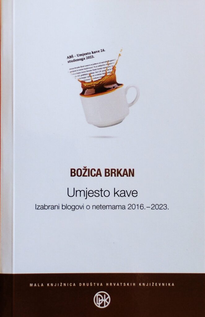 Zahvaljujem na pitanjima o knjizi Umjesto kave / izabrani blogovi o netemama 2016–2023., Mala knjižnica DHK, 2024. te gdje se može kupiti, upućujemo vas na izdavača: http://dhk.hr/mala-knjiznica/detaljnije/bozica-brkan-umjesto-kave-izabrani-blogovi-o-netemama-2016.-2023. Dodajemo i kazalo imena spomenutih u knjizi. Autorica